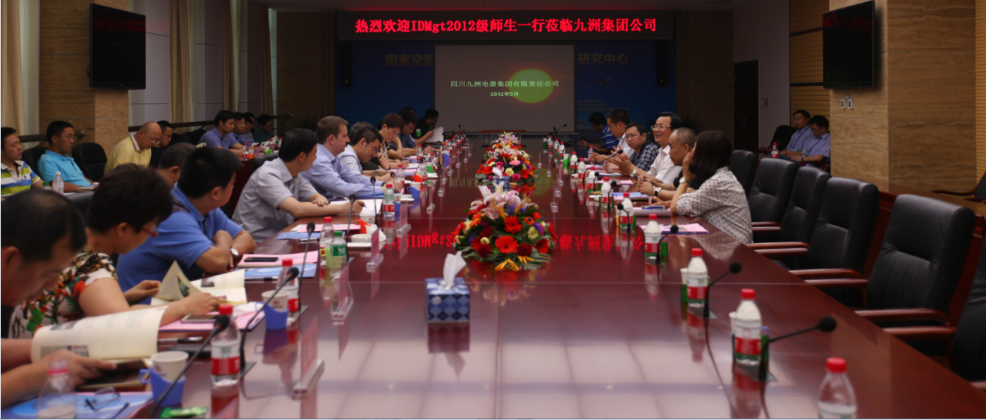2013年6月9日,2012级合作管理学博士班的学员们来到四川九洲电器集团有限责任公司,进行企业参观与调研。来自葡萄牙里斯本工商管理大学的Virginia Trigo教授、Jorge Lengler教授以及电子科技大学经济与管理学院副院长井润田教授、IDMgt项目肖文主任也全程参与并走访了企业。
