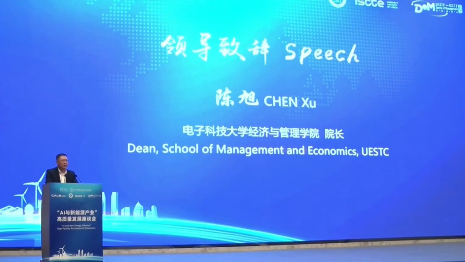 电子科技大学经济与管理学院院长陈旭致辞表示,电子科技大学是国内电子信息领域的顶尖高校,高度重视科技创新和产业创新相结合。电子科技大学经济与管理学院建院43年来,始终与波澜壮阔的中国式现代化同频共振。立足新发展阶段,学院明确了“特色化、国际化、品牌化“三大发展战略。在特色化战略方面,一是依托学校学科优势,强调管工交叉融合的人才培养和科学研究;二是立足经济管理学科特色,强调产教融合,将经管学院建在产业上。DOM项目是学院国际化和品牌化的重要载体,在中葡双方的共同努力下,已成为中外合作办学的金字招牌。陈旭强调人工智能发展在重视人工智能产业发展的同时,要更加重视人工智能赋能包括新能源产业等其他产业的发展,产学研深度融合、多学科交叉协同。江门开放创新、充满活力,期待与江门携手培育更多创新成果。