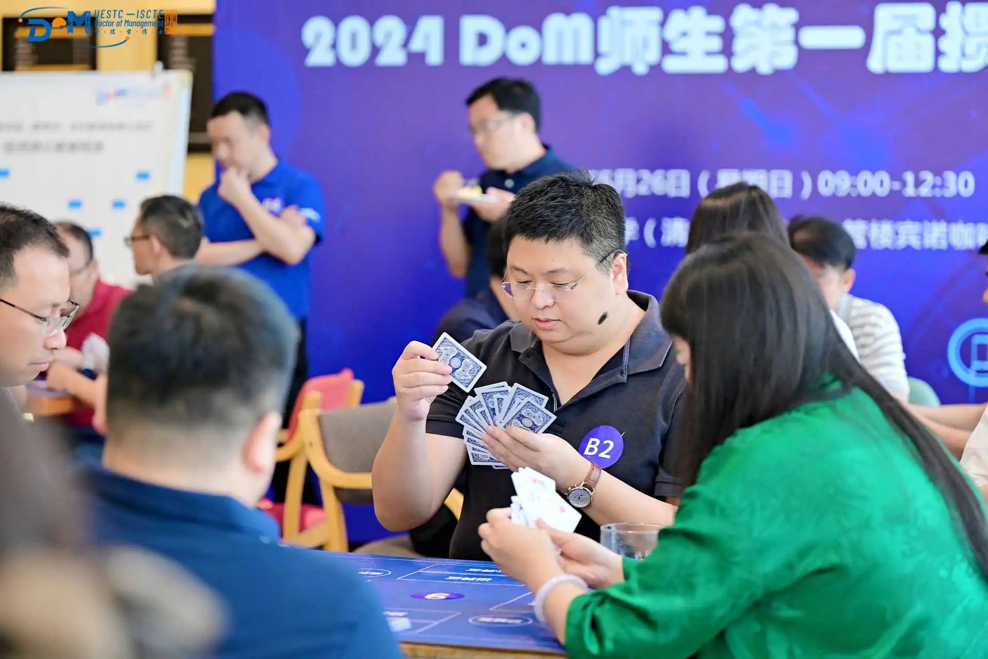 5月26日上午,电子科技大学经管楼宾诺咖啡传出阵阵欢笑,2024DoM师生第一届掼牌比赛正在热烈进行。四十余位DoM师生相聚,牌桌竞技,在轻松愉悦的氛围中交流情感,在繁忙的学习工作中修养身心。