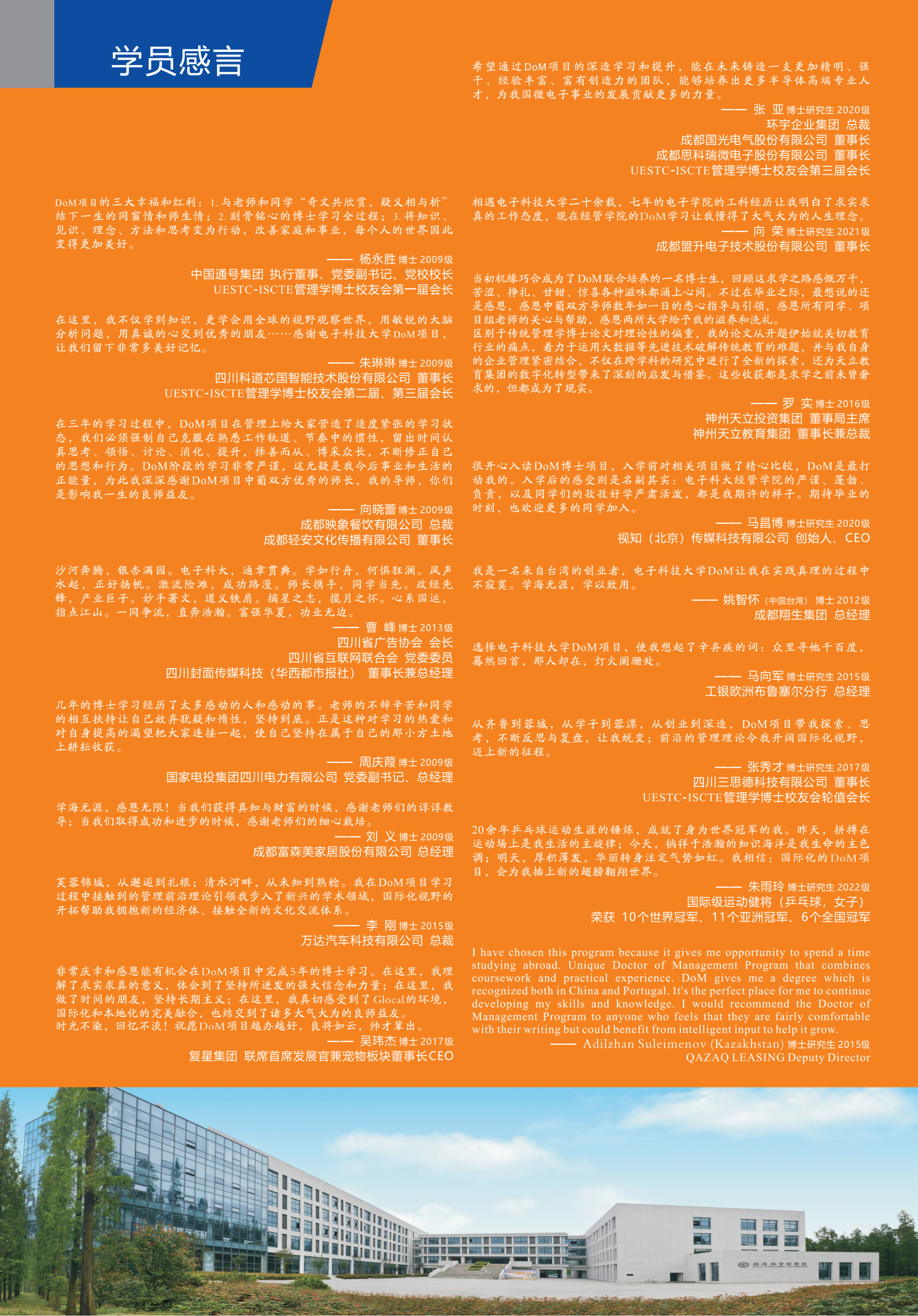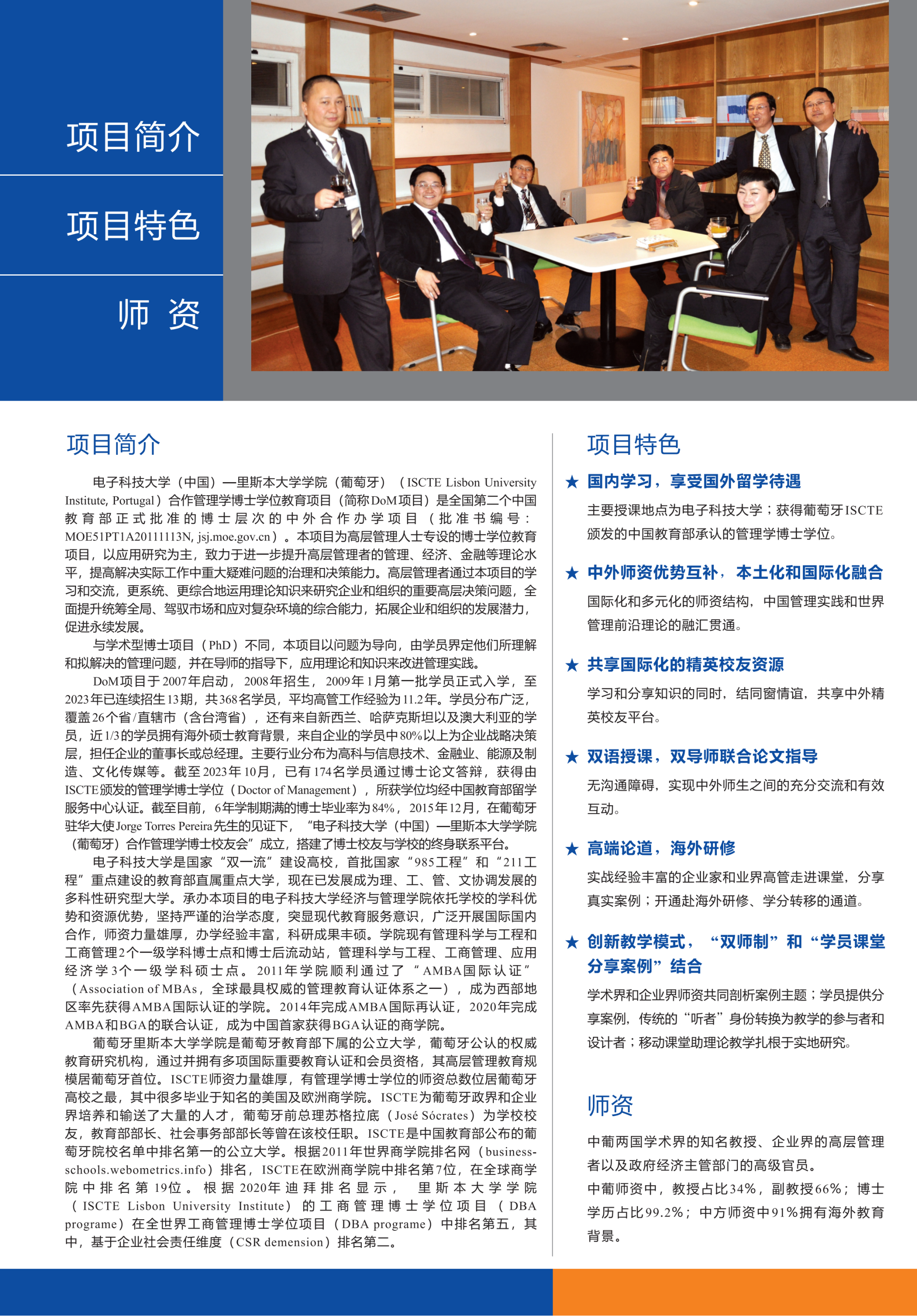 电子科技大学(中国)—里斯本大学学院(葡萄牙)合作管理学博士项目(简称为“UESTC-ISCTE DoM项目”),2024年招生已正式启动。通过中外联合招生委员会初步的资格审查后,申请者进行了第二轮的资料提交。