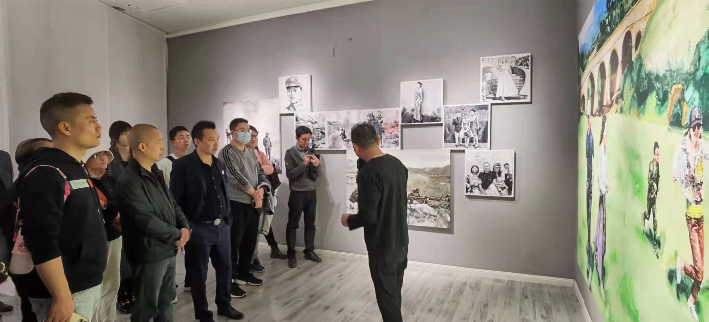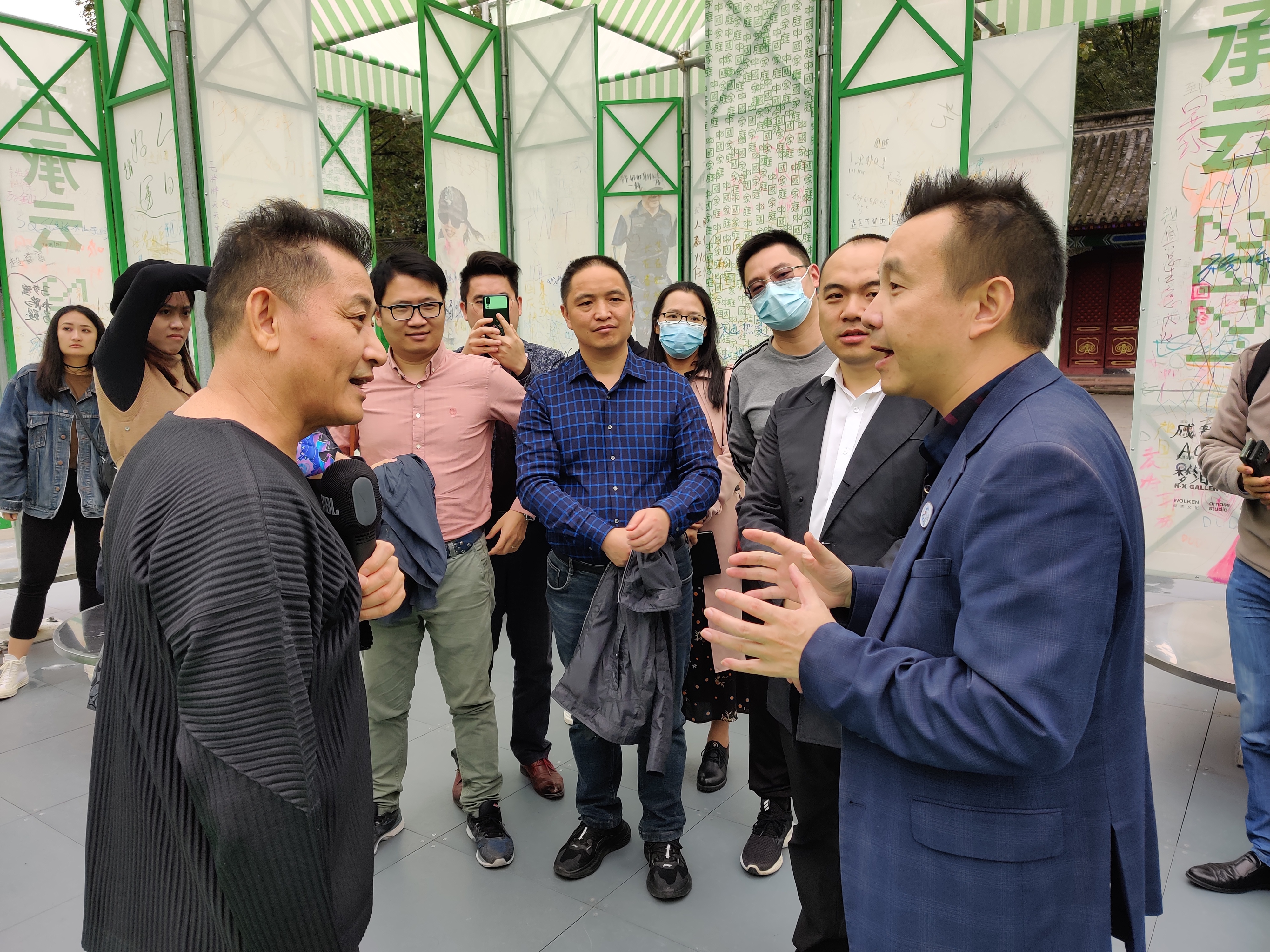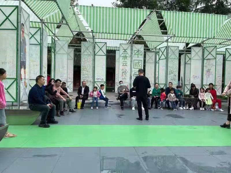 在美术馆门口,王承云大师向大家介绍了“家庭”系列画展展厅的主色调—绿色。谈及画展选址,王大师说到:武候祠美术馆建筑带有浓郁的明清时期特色,古老建筑第一次与当代艺术、当代家庭相融合,意味着厚重的历史与新生代艺术的碰撞,迸生希望的新芽;同时,在新冠疫情背景下,绿色也意味着希望、新生。
