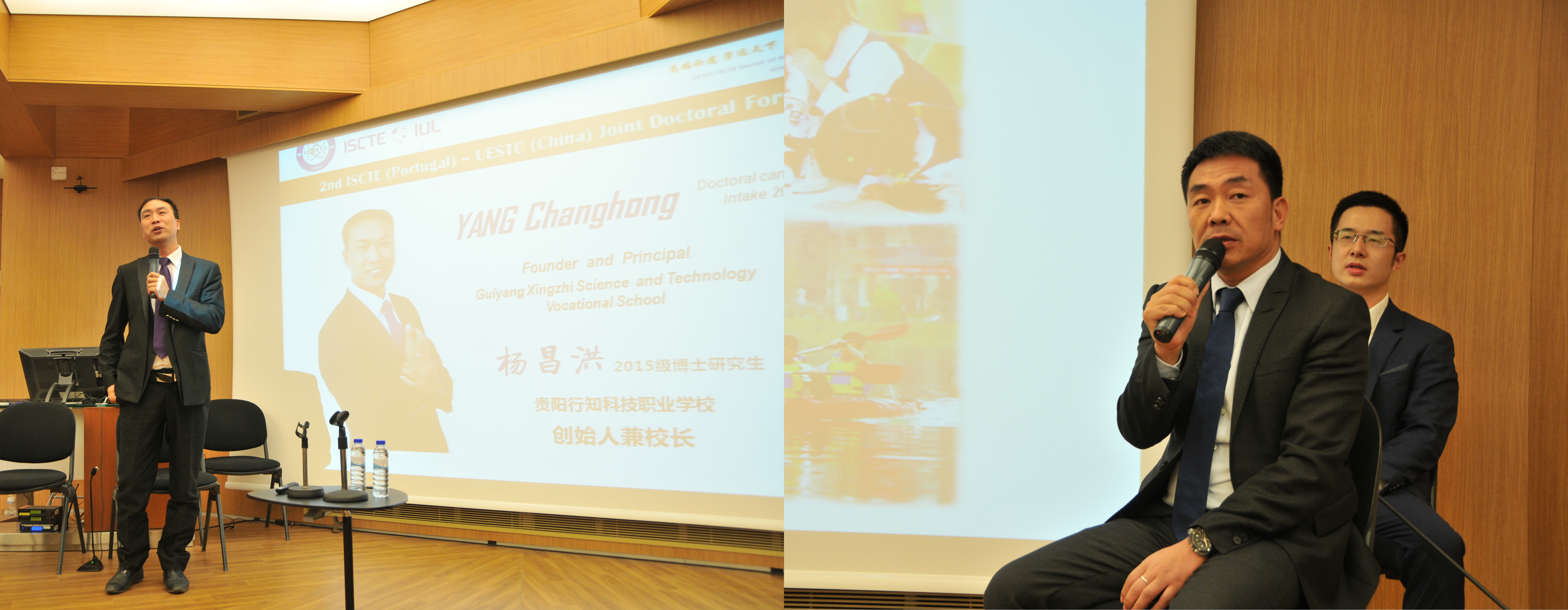 10月26日下午,第二届电子科技大学(UESTC)-里斯本工商管理大学(ISCTE)联合博士论坛在ISCTE举行。此次论坛由IDMgt项目主任肖文副教授和ISCTE中国项目主任Virgínia Trigo教授共同主持。博士论坛的主题是“Internationalisation and Education: The Two Poles of Economic Development 国际化与教育:经济发展的两极” ,旨在促进双方学校博士研究生以国际化教育为背景的相互交流、碰撞和学习,为双方学校和博士研究生提供更多方位的合作和发展契机。IDMgt2015级和2016级博士研究生与ISCTE博士研究生同场对话、一起探讨,共谋发展。中外双方校方代表也参加了此次博士论坛。