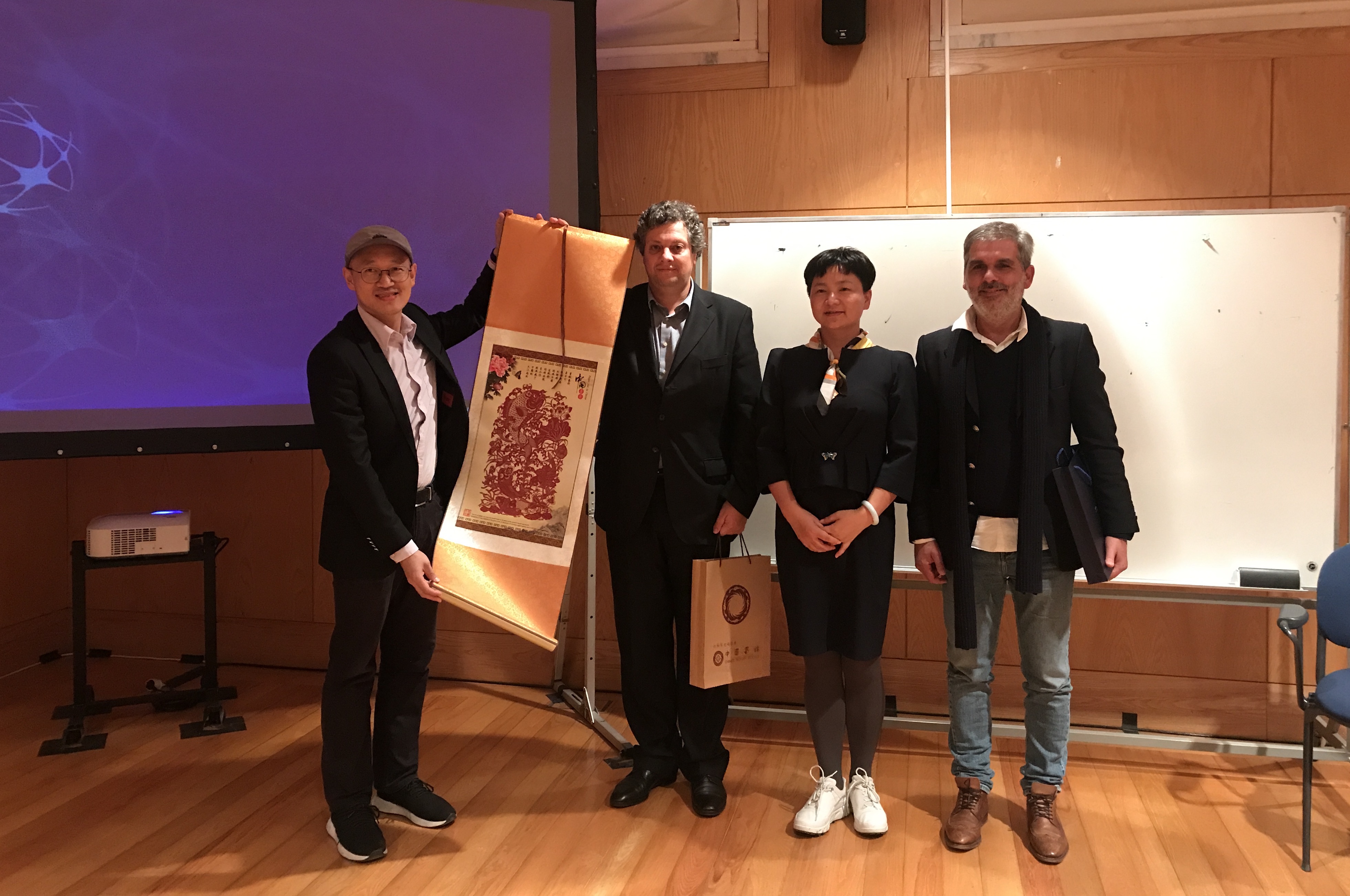 中葡企业家行业主题演讲后,论坛进入了行业配对分组交流。分组交流的三个主题分别是中葡企业家都有浓厚合作兴趣的“电子&科技”、“智能制造”和“新材料与创投“,大家互相交换行业现状,互通有无,拓展合作机会共谋发展。为在轻松愉快友好的氛围中促进和加深中葡企业家的合作交流,主办方还特意安排了一场非正式的鸡尾酒会。葡萄牙创投副主席Rui Alpalhao致结束语,对论坛的成功举办及为中葡企业的友好合作带来的积极影响给予了高度评价。最后,IDMgt2018级班长张雁和李志鹏代表IDMgt项目向葡萄牙创投赠送了具有中国特色的礼物。