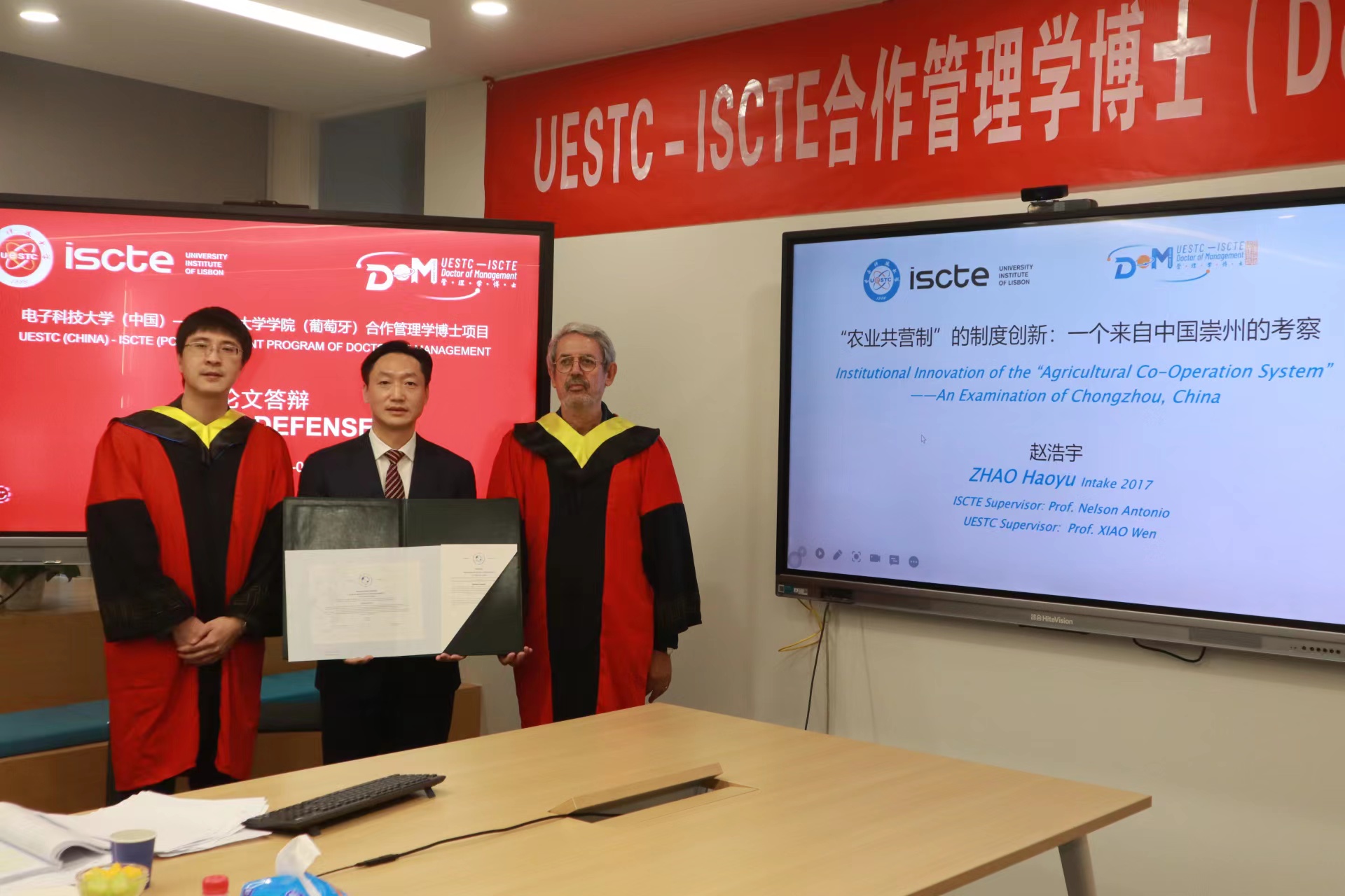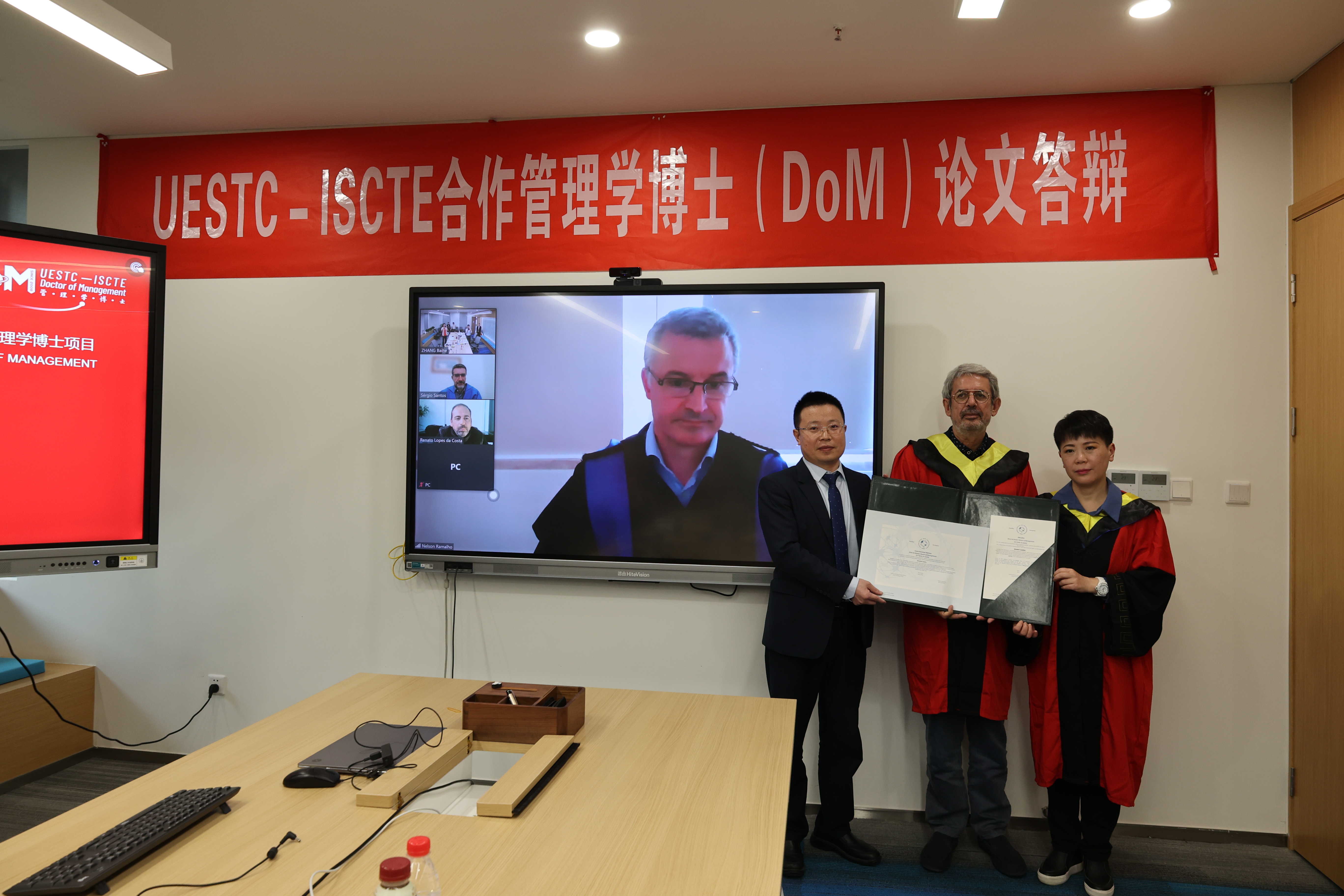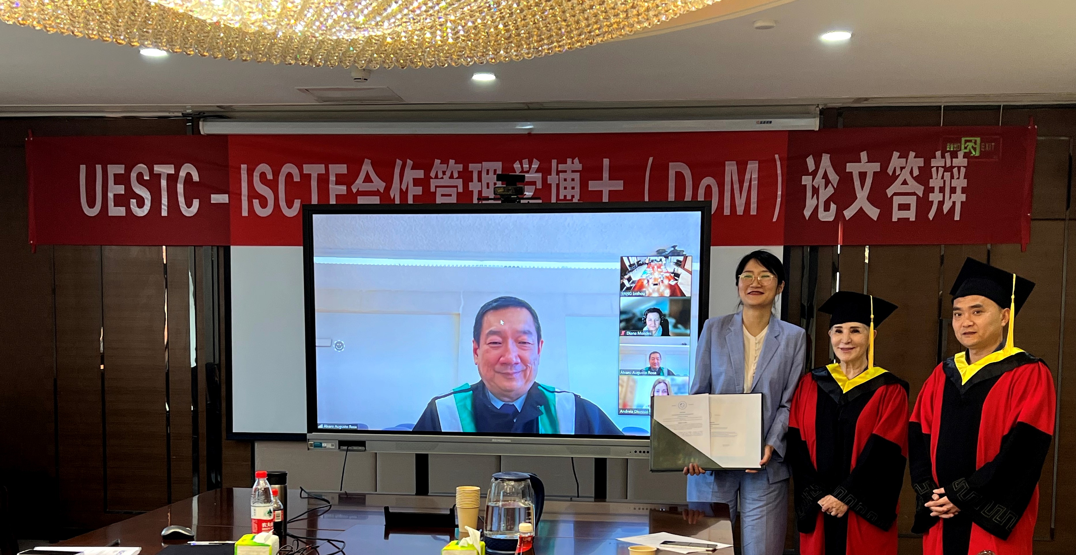 书山有路勤为径,学海无涯苦作舟。5月16-19日,6名埋首“书山”,苦做研究的DoM同学,终于“触摸到学海的彼岸”,顺利通过博士论文公开毕业答辩,获得沉甸甸的管理学博士学位。里斯本大学学院Virginia Trigo教授、Nelson Antonio教授、电子科技大学经济与管理学院方佳明教授、李强教授、肖文教授在现场与其余ISCTE线上答辩委一起,共同见证了6名博士的新鲜出炉,一起祝贺DoM管理学博士队伍壮大到123人。