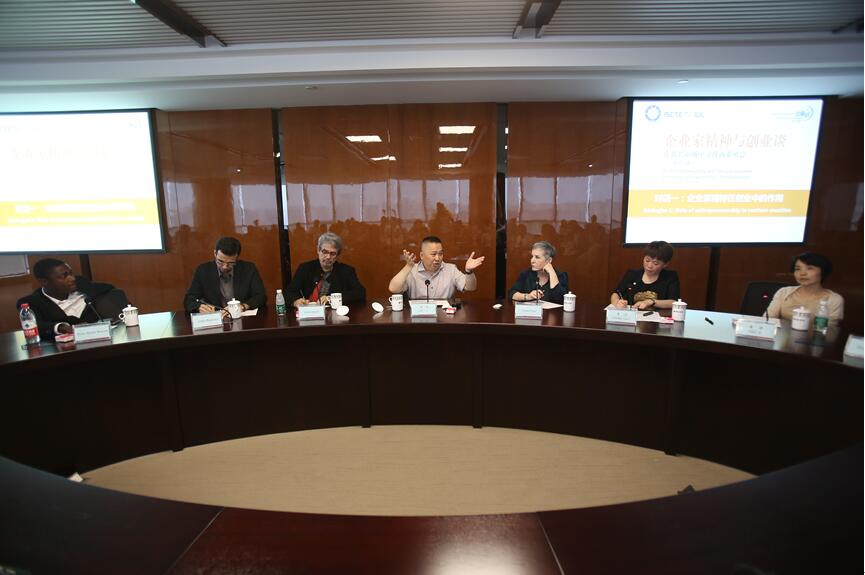 对话中,刘义博士肯定了企业家精神对企业发展的重要作用。他表示,企业价值观和文化启发了他“做百年老店”的愿景并制定与之相关的策略,在“知行合一、惠人达己”等企业精神的指引下,他重视员工的培训和团结。同时,刘义博士分享了自己的家族创业故事,并以之回答蒙古留学生对年轻人找到创业第一桶金的疑问。此外,他还援引IDMgt课堂所学的SWOT分析理论,为印尼留学生在对比中印两国创业精神的过程中解惑。IDMgt2015级学员也从中国经济新常态的视角出发,就自己关心的企业家精神和组织创新问题和刘义博士及几位中外教授进行交流。加纳硕士留学生Abraham Gyekye在对话中也做题了“在新兴市场中寻找商业机会”的分享。对话最后,Virginia教授做出点评,并鼓励年轻人进行创业和创新。据悉,第三天的课上,教授还结合“传统价值链和新价值链”概念,对富森美的对话内容进行进一步分析。