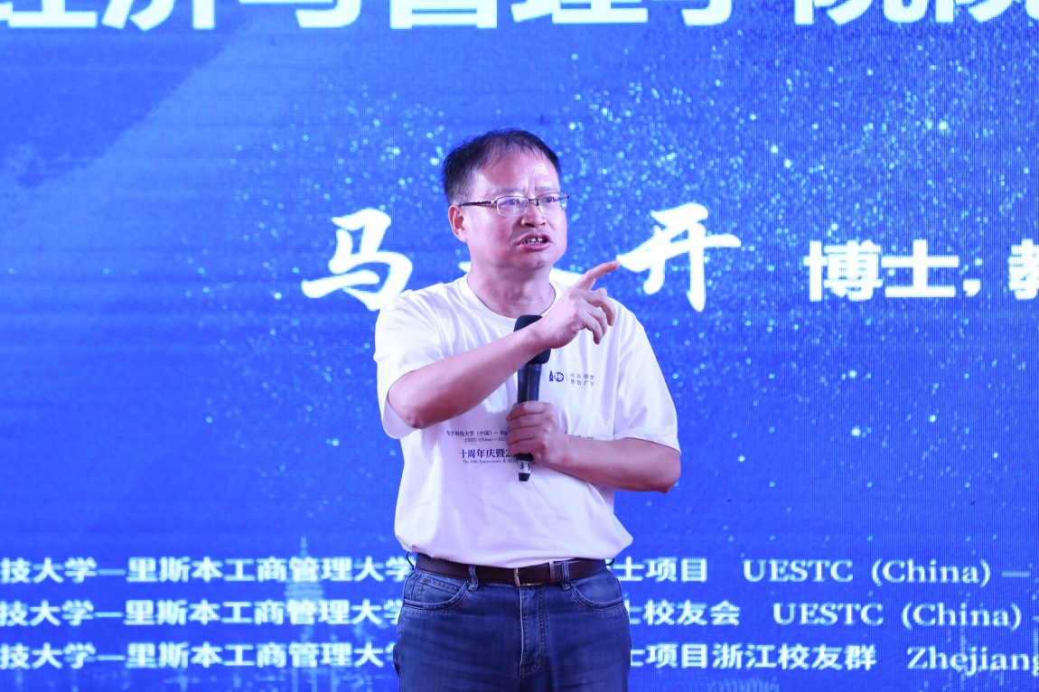 随后,电子科技大学合作发展部副部长、校友总会副秘书长李丽娟致辞感叹IDMgt项目十年的丰硕成果,希望下一个十年再创新辉煌。电子科大经济与管理学院院长马永开教授致辞,对2019级新同学表示欢迎,并对大家真挚提出三个“希望”:希望学员能经常回学校,希望同学在学业和工作上都继续努力,希望大家劳逸结合,健康生活。